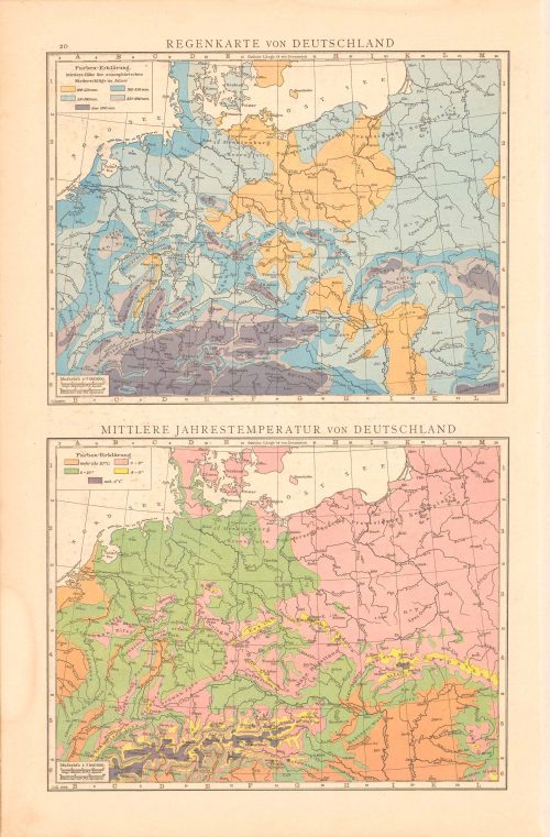 Regenkarte Von Deutschland, Mittlere Jahrestemperatur Von Deutschland (Rain Map of Germany, Mean Annual Temperature of Germany)