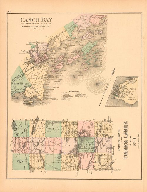 Casco Bay (from Broad Sound to Cape Elizabeth Light) and map of Timber Lands of Maine No.1, with map of Casco Bay, 1890