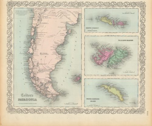 Colton’s 1865 Map of Patagonia, South Orkney (Powell’s Group), Falkland Islands, and South Georgia Island