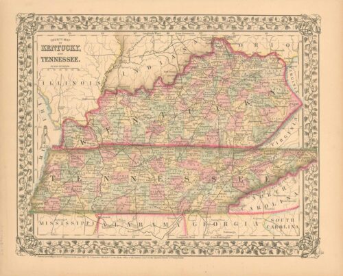 County Map of Kansas, Nebraska, Colorado Dakota, Wyoming Montana