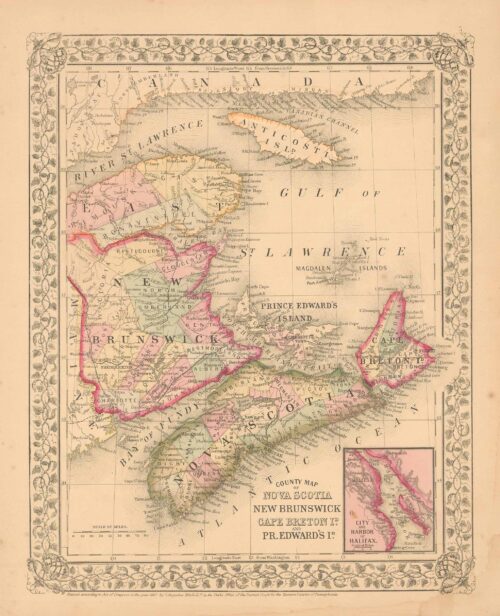 County Map of Nova Scotia New Brunswick Cape Breton Isl. and Prince Edwards Isl. (with an inset map of the city and harbor of Halifax)’