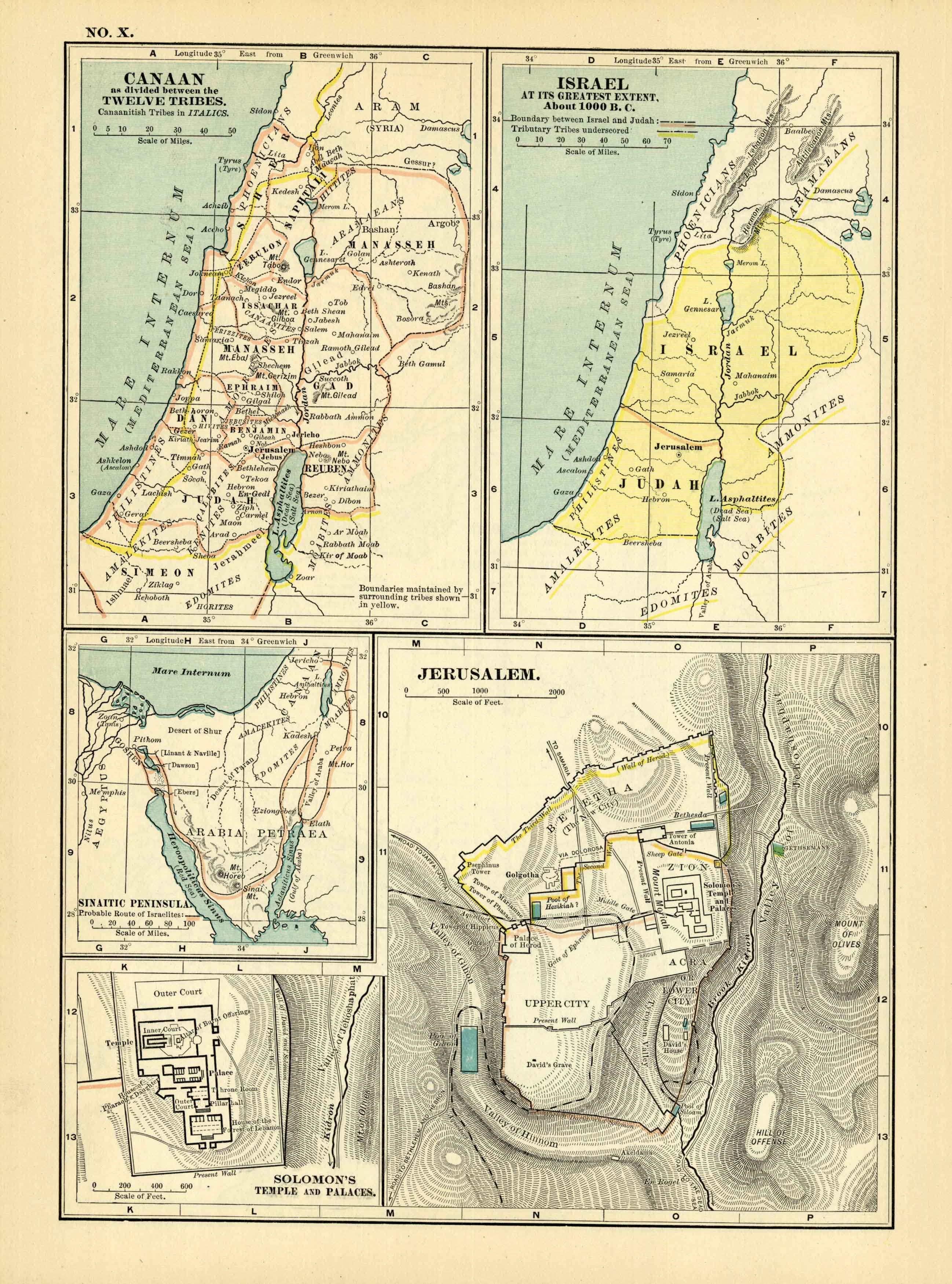 Canaan as divided between the Twelve Tribes. Israel at its Greatest Extent, About 1000 B.C. Sinaitic Peninsula. Solomons Temple and Palaces. Jerusalem.