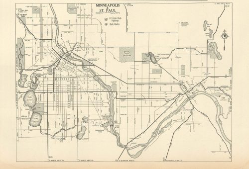 Art Source International has amassed a collection of authentic antique maps and images brilliantly highlighting and detailing the city of Minneapolis, Minnesota, which is bisected by the Mississippi River and neighbors the city of St. Paul. Minneapolis and St. Paul form the Twin Cities. The city has one of the most extensive public park systems in the United States with many of these parks being connected by the Grand Rounds National Scenic Byway. Points of interest for the city include Minnehaha Falls, the Basilica of Saint Mary, Mill Ruins Park, and the Mall of America. Art Source International reproductions and vintage maps can be ordered framed or without a frame.