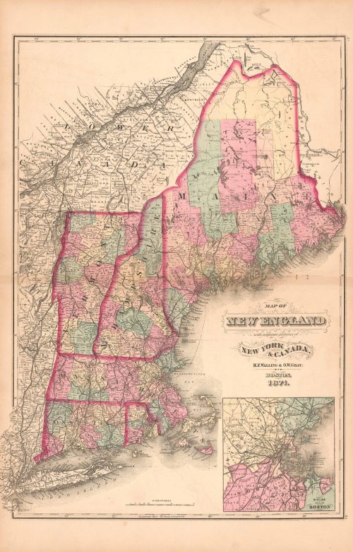 Map of New England with adjacent portions of New York & Canada