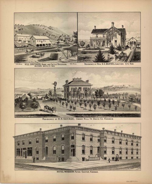 L.H. Evert’s 1887 Map of Hill Brothers, Horse & Cattle Breeders / Residence of Hon. G.E. Beates / Residence of H.H. Savage / Hotel Woodson