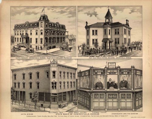L.H. Evert’s 1887 Map of Hotel Handley / East Side Public School Building. / State Bank of Cherryvale, Kansas