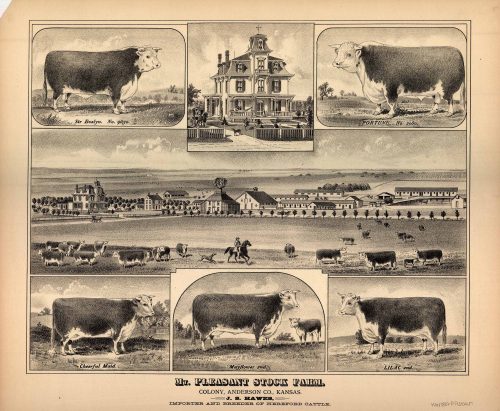 L.H. Evert’s 1887 Map of Mt. Pleasant Stock Farm. J.S. Hawes, Importer and Breeder of Hereford Cattle.