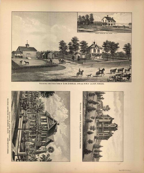 L.H. Evert’s 1887 Map of Residence and Stock Farm of D.M. Dibble / Residence of Harry E. Kelley / Residence of John Davidson