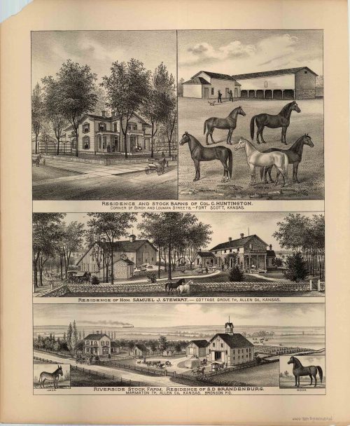 L.H. Evert’s 1887 Map of Residence and Stock Barns of Col. G. Huntington / Residence of Hon. Samuel J. Stewart / Riverside Stock Farm, Residence of S.D. Bradenburg
