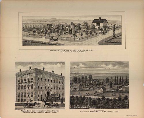 L.H. Evert’s 1887 Map of Residence & Stock Farm of Capt. A.J. Jennings / Wilder Bros’. Shirt Manufactory & Steam Laundry. / Residence of James W. Belts.