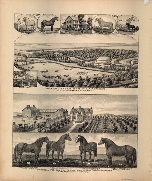 L.H. Evert’s 1887 Map of Stock Farm and Residence of D. & R. Bartlett / Residence and Stock Farm of A.H. Roberts