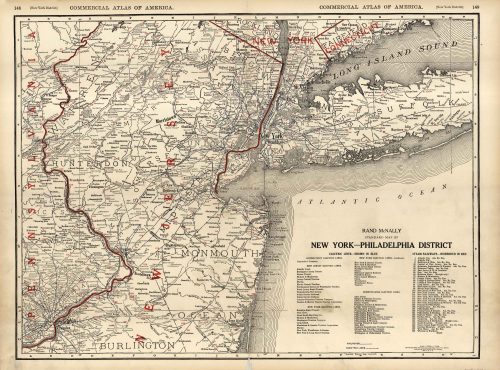 McNally’s 1922 Mileage Map of Eastern United States, Chicago to New York