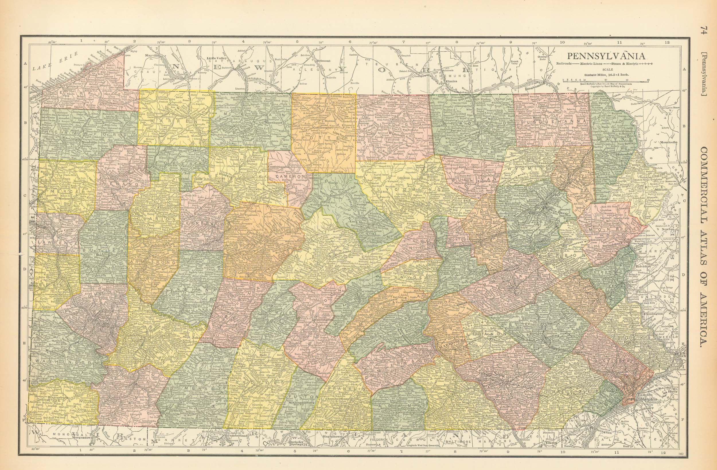 McNally's 1919 Map of Pennsylvania