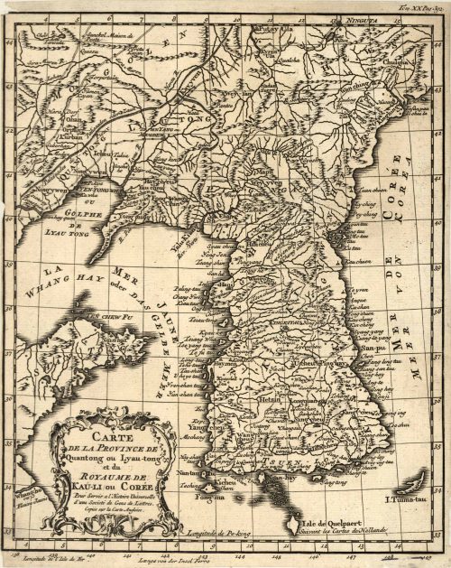 Carte de la Province de Quantong ou Lyau-tong et du Royaume de Kau-li ou Coree (Map of the Kingdom of Korea)