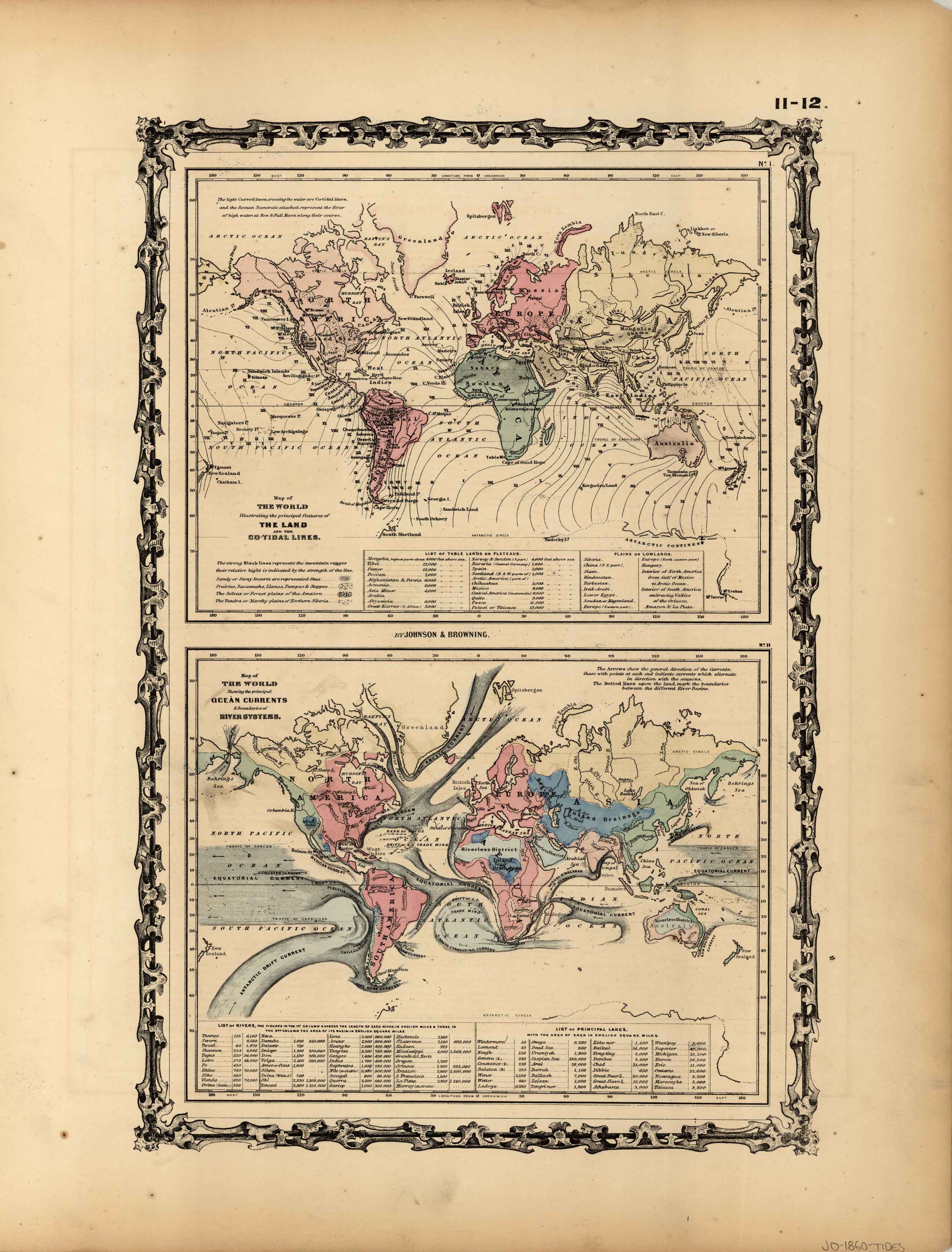 Johnson's Map of the World -- The Land and the Co-Tidal Lines, Ocean Currents and River Systems