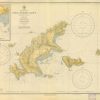 This coastal survey was printed by the U.S. Navy Hydrographic Office in Washington D.C. Details include the names of cities and waterways along the coast. Depth soundings are shown in fathoms. Other details that maybe included are lighthouses and buoy positions.