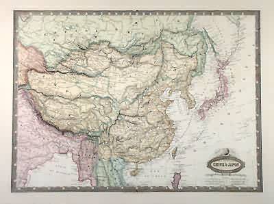 M. F. A. Garnier made the “Atlas de Geographie” in 1862. The maps in this atlas would frame nicely due to their extraordinarily beautiful hand coloring and title plates and their large margins. China, Japan and adjacent countries are illustrated on this map with pastel coloring. The names of regions, possessions, important cities, island chains, mountains, rivers and lakes are identified in French.