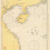 This coastal survey was printed by the U.S. Navy Hydrographic Office in Washington D.C. Details include the names of cities and waterways along the coast. Depth soundings are shown in fathoms. Other details that maybe included are lighthouses and buoy positions.
