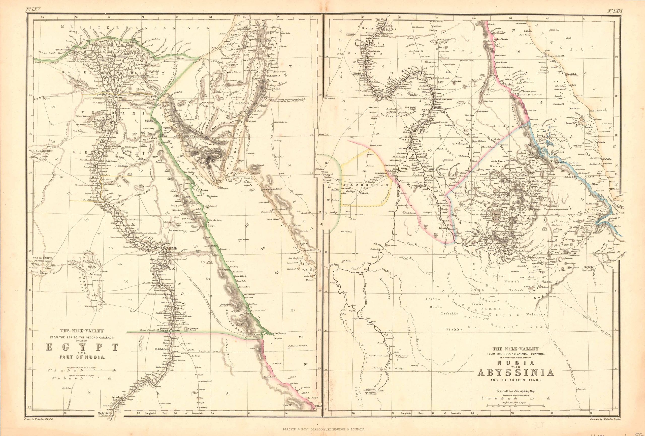 This map was made by W. G Blackie, an English mapmaker in 1860 for The Imperial Atlas of Modern Geography; An Extensive Series of Maps. The Nile-Valley, including Egypt and Part of Nubia is illustrated on this wonderfully detailed, original hand outlined colored map.