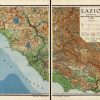 Published in 1950, this is large, beautifully colored map of Lazio, the western, central part of Italy, and several provinces in the area. This geological map shows the land features and altitudes by color variations, which adds to the vivid look of the map. Other indications are roads, highways, railways, and borders. It is divided into two parts, (shown side by side in image) which can be easily framed together for one large piece.