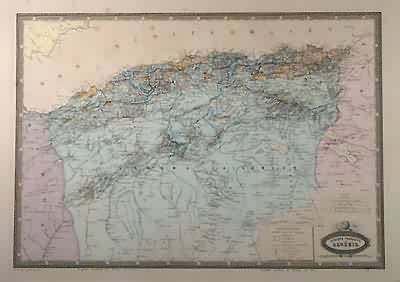 M. F. A. Garnier made the “Atlas de Geographie” in 1862. The maps in this atlas would frame nicely due to their extraordinarily beautiful hand coloring and title plates and their large margins. Algeria is illustrated on this map with pastel coloring. The names of regions, possessions, important cities, island chains, mountains, rivers and lakes are identified in French.