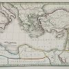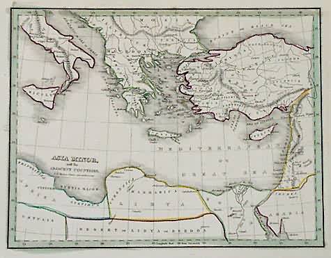 This finely detailed map of Asia minor and adjacent countries was made by Thomas Bradford in 1835. A characteristic sage green border and original hand outline coloring highlight this small scale map nicely. Countries, mountain ranges, rivers, and larger known cities are noted.