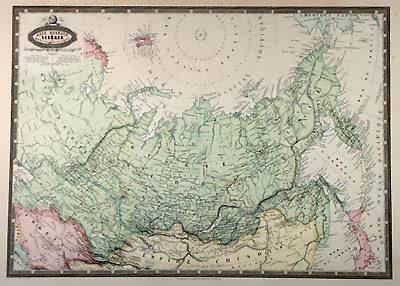 M. F. A. Garnier made the “Atlas de Geographie” in 1862. The maps in this atlas would frame nicely due to their extraordinarily beautiful hand coloring and title plates and their large margins. Russia in Asia and adjacent countries are illustrated on this map with pastel coloring. The names of regions, possessions, important cities, island chains, mountains, rivers and lakes are identified in French.