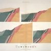 Richly colored double-page sheet of geologic sections from Smuggler Mountain near Aspen, Colorado. Shows faults, shafts.
