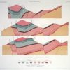 Richly colored geological section diagrams from the Tourtelotte Mining District near Aspen, Colorado. Shows faults and mine shafts.