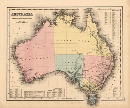 Art Source International is proud to offer this map from the 1857 edition of Coltons General Atlas. Colton atlases, especially those from the late 1850’s, have become increasingly rare. The General Atlas was the first single edition atlas published by the Colton brothers succeeding the expensive two volume Atlas of the World. The Colton firm refused to compromise quality, choosing to compete for sales in the finer quality international market rather than the cheap domestic one. Because of this, all maps were engraved by steel plates rather than by wax engraving which was the most common method used at this time. This map of Australia is very detailed. It shows lakes and rivers, mountains, regions and or provinces, railroads, wagon trails, cities and towns, and many other details. Muted pastel hand coloring in pink, blue, green, and yellow.