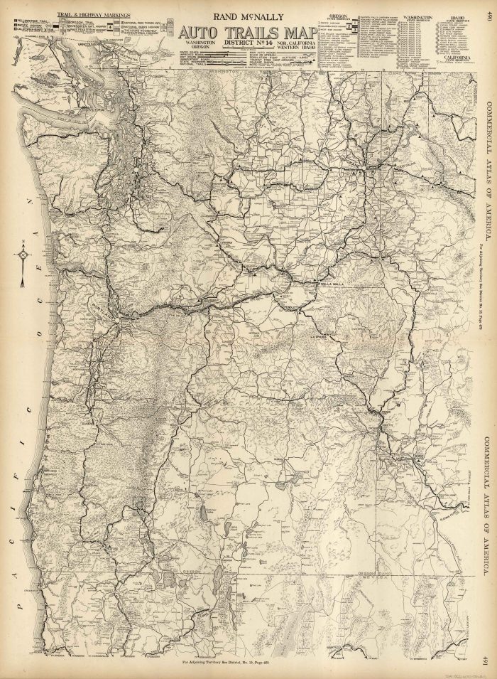 McNally’s 1922 Auto Trails Map of Washington, Oregon, Nor. California, and Western Idaho