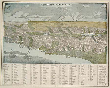 This detailed map was produced for Crams 1895 “Universal Atlas – Geographical, Astronomical and Historical.” In 1869, the George F. Cram Company was born, and the Cram name quickly became synonymous with accuracy and innovation. This map provides an aerial view of the Holy Land. ‘