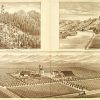 We are proud to offer the maps and views by Thos. H. Thompson from his rare Official Atlas of Tulare County, California. These Birds Eye views show the most prominent commercial properties, farms and residences of Tulare county. They are a fantastic record of turn of the century California. This view features the ranch and residence of J.J. Cairnes, 11 miles East of Tulare and the ranch and residence of H.M. White, Frazier Valley. Also shown is a view of Mountain Home Summer Resort in Big Red Woods, A.J. Dotty, prop, 30 miles N.E. of Porterville and one mile from Crystal Cave where the themometer ranges from 65 to 85 in summer months and has the finest trout fishing in the range.