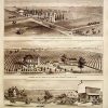 We are proud to offer the maps and views by Thos. H. Thompson from his rare Official Atlas of Tulare County, California. These Birds Eye views show the most prominent commercial properties, farms and residences of Tulare county. They are a fantastic record of the turn of the century California. This view features the ranch and residence of P. Bondson of Lakeside, the residence and fruit ranch of W.A. Long near Grangeville, the Stock ranch of J.M. Daggs 2 miles West of Hanford and the meat market of Daggs and Landis in Hanford.