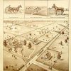 We are proud to offer the maps and views by Thos. H. Thompson from his rare Official Atlas of Tulare County, California. These Birds Eye views show the most prominent commercial properties, farms and residences of Tulare county.They are a fantastic record of turn of the century California. This view features a scene on Oakdale ranch owned by B.F. and T.E. Bishop, 6 miles N.E. of Tulare City. Also shown are drawings of a stallion, Nickidemus, an imported jack, Joe and a view on Oak Dale Ranch.