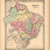 Art Source International is proud to offer this map of Brazil and Guayana from the 1856 edition of Coltons Atlas of the World. Colton atlases, especially those from the 1850’s, have become increasingly rare. The Colton maps were engraved by steel plates rather than by wax engraving, which was the most common method used at this time. These maps are very detailed in beautiful hand colored pastels, and feature Colton’s signature 3/4 inch border. This map shows countries and/or regions, cities, towns and villages, transportation routes, common roads, canals, rivers and lakes, and other geographical features.