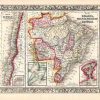 This exceptional map is from “Mitchells New General Atlas” published by S. Augustus Mitchell, Jr in 1861. This steel plate engraved map has original hand coloring and crisp engraved lines. Maps from this 1861 ( 2nd edition) atlas have become very difficult to acquire.Surrounding these maps of Brazil, Bolivia, Paraguay and Uruguay, Chili is a ‘ inch floral border. Counties, provinces, many cities,rivers and lakes are identified on this beautiful map. Inset maps showing Island of Juan Fernandez, the Harbor of Bahia and the Harbor of Rio de Janeiro are included.