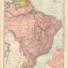 This large scale map came from the 1894 Rand-McNally Indexed Atlas of the World. This multi-colored map of Brazil and Guiana shows railroads, cities, towns, and many topographical features. All railroads operating in 1894 are shown on this map. This map is in very good condition and contains fantastic detailing.