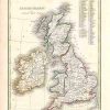 Thomas G. Bradford (1802-87) of Boston Massachusetts included this map in his first atlas, titled “A Comprehensive Atlas Geographical, Historical and Commercial,” published in 1835. These skillfully created maps were hand colored, which adds to their classic, decorative appeal. A sage border surrounds this map of the British Islands. Pink, yellow, and green are used as outline colors throughout the body of the map. Counties, important cities, rivers, and bodies of water are identified.