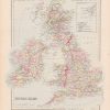 This antique map of the British Isles was produced by O.W. Gray as part of his “National Atlas” in 1884. Gray was involved in the production of Atlas’ from ca. 1871 – 1886. We love his maps because of the wonderful hand coloring and attention to detail.