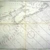 This coastal survey was made in October 1942 by the U.S. Navy Hydrographic Office in Washington D.C. Details include the names of cities and waterways along the coast. Depth soundings are shown in fathoms. Other details included are lighthouses and bouy positions.