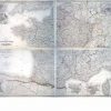 This set of large hand-colored, steel engravings was published in the “Atlas Universel” by H. Dufour in 1864. France is illustrated with inset maps of Nantes, Rouen, Bordeaux and Paris. Beautiful pastel coloring distinguishes regions. The names of regions, and important cities, rivers, lakes, mountain ranges, major roads, and railroad lines are given. Each map measures 21.75 x 29 each.