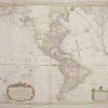 This is a beautiful map showing us a stage in the evolution of Covens & Mortiers map of the Americas. This grand image includes a wealth of information on the latest discoveries as well as historical presidences that charted the future. We see noted the “Ligne de Demarcation” set by Pope Alexander VI which gave everything west of the line to Spain and east of the line to Portugal. This line cuts through South America and allowed the Portuguese to claim Brazil as their own terrirorty. Other notable inclusions found on this map are the fabled ‘sea of the West”, which was supposed to have engulfed most of the Pacific Northwest. There is also a primitive chain of islands, which allude to the Aleutian islands off of Alaska, yet no peninsula for it to connect with from the mainland. The heart of the continents is still a mix of substance and speculation, but the story it tells is fascinating and intriguing. The condition of this map is very good and is handsomely colored.
