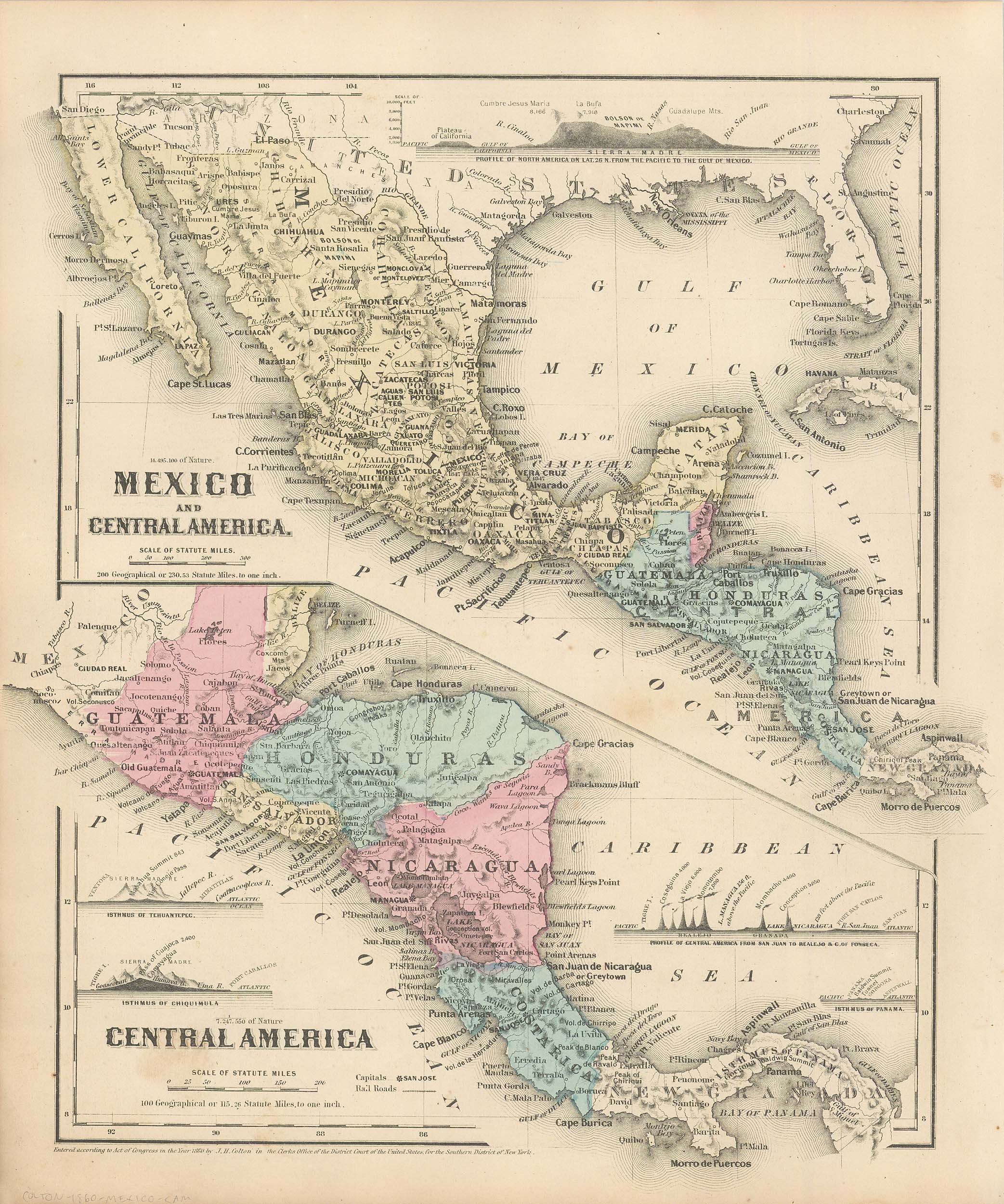 Colton’s 1860 Physical Map of Mexico and Central America