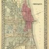 Extremely rare and hard to find, this map of Chicago was made by S. Augustus Mitchell in 1872. Pastel coloring differentiates city sections, and city streets, parks, and railroads, depots are illustrated. A distinctive ivy style border completes this map beautifully.