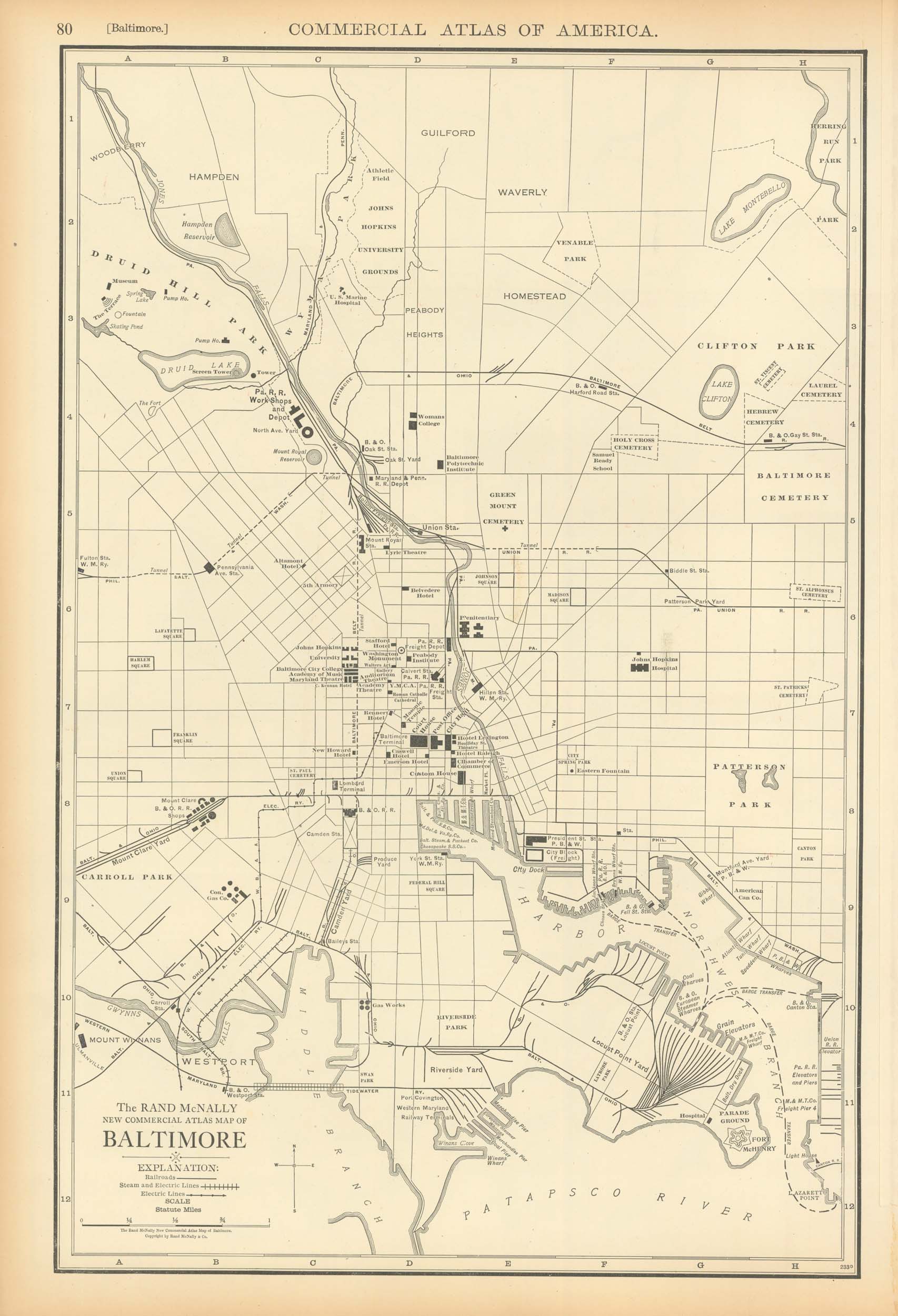 We are proud to offer this wonderful large scale map originally issued as part of Rand McNally’s Commercial Atlas of America in 1919. The maps from this atlas were larger than most atlas’ published at the time and show many more cities and towns. All railroad lines were drawn in red and numbered with a listing of all railroads operating in the area on each map. William H. Rand founded the company in 1856 and incorporated it in 1873 with his partner Andrew McNally. They published their first atlas, The Business Atlas, in 1877. Rand McNally and Company is the oldest business of its kind in the country.