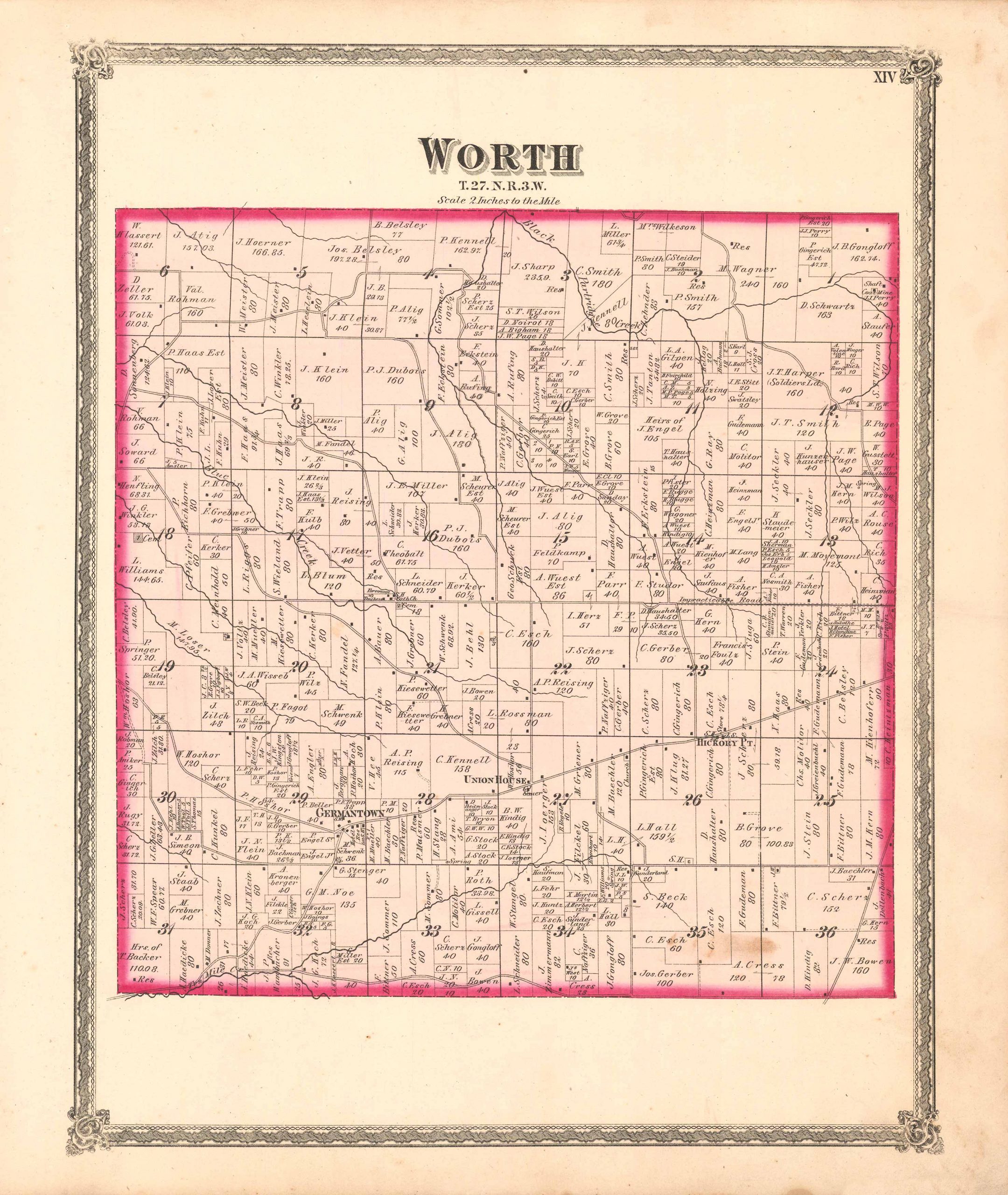 With characteristic floral boarders and beautiful, muted pastel coloring, these 1864 maps are fantastic examples of Mitchells work. The names of streets, parks, rivers, lakes, and railroads are identified. This hand colored map illustrates the plan of Baltimore.