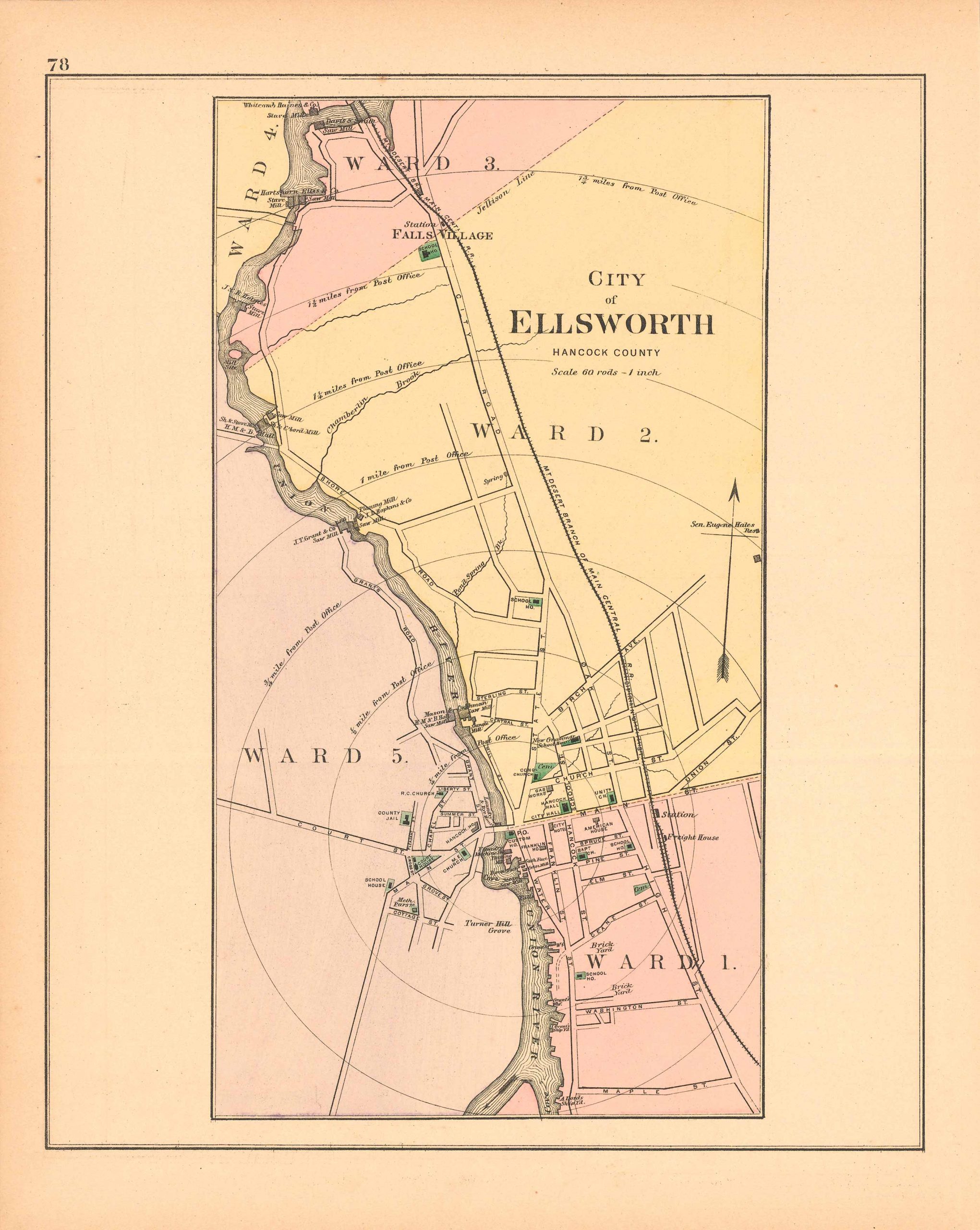Stuarts 1890 Map of City of Ellsworth, Hancock County