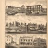 This black and white engraving was issued as part of the “Illustrated Historical Atlas of the State of Minnesota,” published in 1874 by A. T. Andreas, Chicago, Illinois. This image captures the romantic history of many important homes, businesses, farms and landmarks in 1874 Minnesota. The Arnold House, and the farm residence of H. Palas and A.B. Clark are shown. Also included are the residence of Warner E. Chamberlin, Kasson Merchant Mills, Dr. S.W. Ransons Drug Store, Geo. Thuet’s Hardware Store, and the First National Bank.