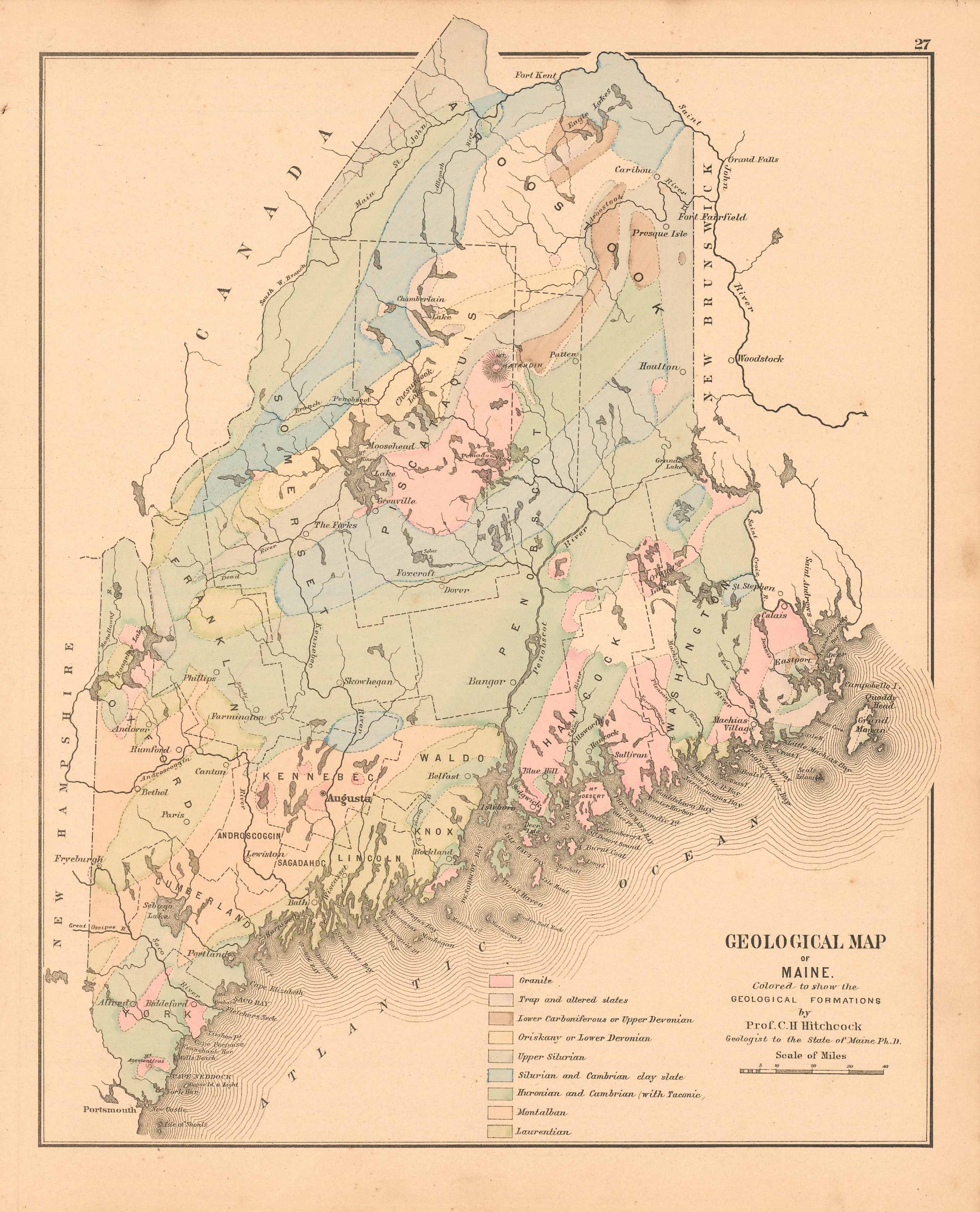 Geological Colby’s 1884 Map of Maine. Colored to Show the Geological Formations by Prof. C.H. Hitchcock